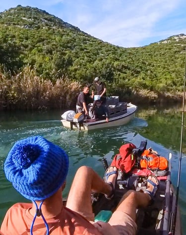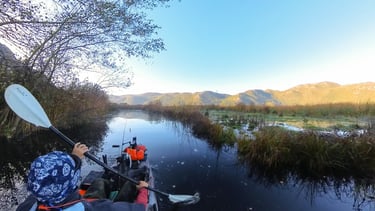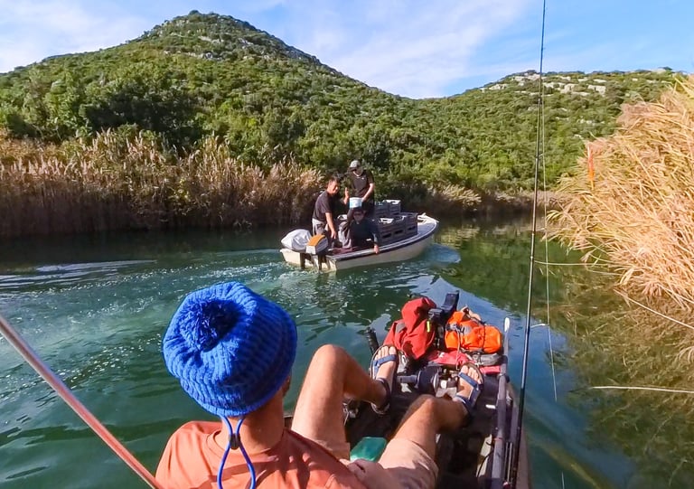 I use pedal and rowing kayaks, Hobie trimarans with sails and pedals, and a small sailing boat.